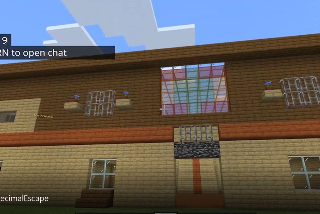 This week I spent a bit longer on a world and created an escape ‘house’. Granted, I’m more of a survivalist than a creator on Minecraft, so don’t expect this to look… polished. But it is what it says, a ‘house’ that when you enter as a team and press the button, you find yourself locked in, with five different challenges based on decimals to answer.