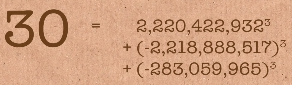 I then share with them the famous problem and that many mathematicians also asked the same thing, can we find every number as a sum of three cubed integers?